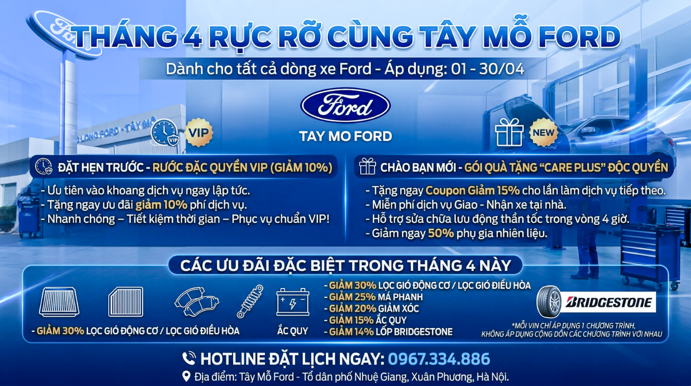 Từ 01/04 – 30/04, Tây Mỗ Ford mang đến chuỗi ưu đãi hấp dẫn giúp bạn tiết kiệm chi phí – an tâm vận hành – vi vu trọn hè.